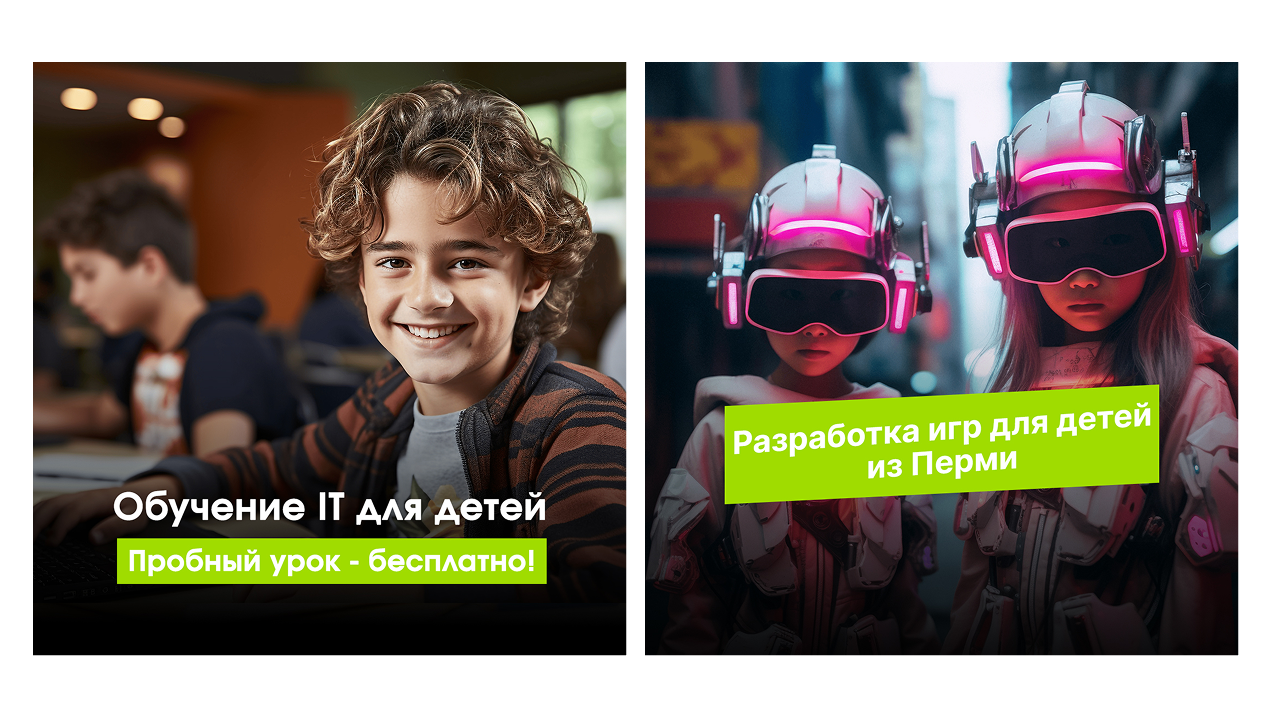 Особым вызовом стало полное отсутствие у клиента готового фотоконтента для рекламных кампаний. Эту задачу команда решила, активно используя возможности искусственного интеллекта для генерации уникальных изображений, релевантных тематике IT и детям.
