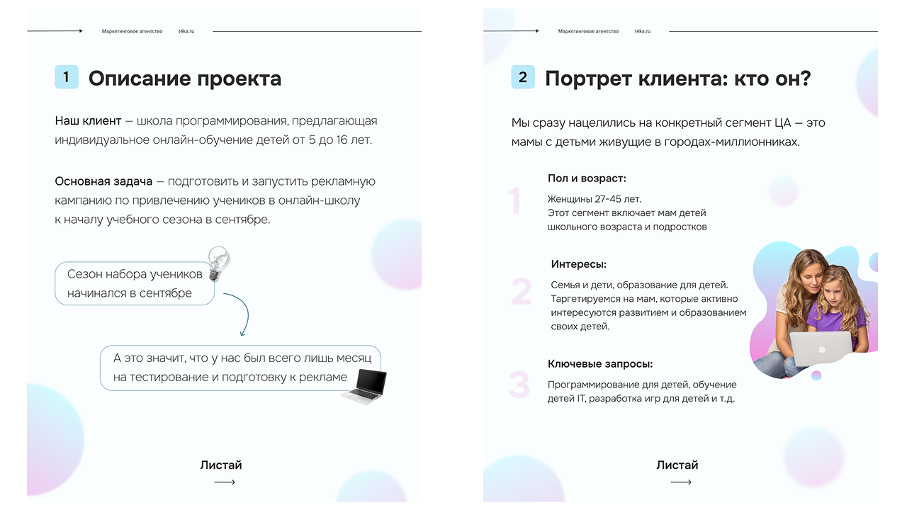 - Поисковые Запросы: Ориентировались на пользователей, искавших информацию по ключевым фразам, касающимся детского IT-образования – от общих запросов типа «курсы программирования для детей» до более узконаправленных, вроде «обучение созданию игр для школьников».