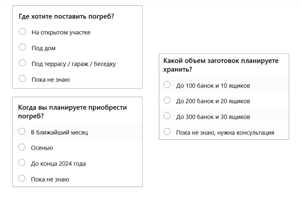 - Семантика: Маркетологи агентства подошли к выбору ключевых слов комплексно. Помимо упоминания погребов, были добавлены тематические фразы, связанные с хранением, домашними заготовками, строительством и обустройством дома, что позволило уменьшить риски слива бюджета на случайные показы.