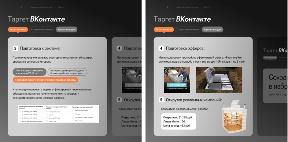 Агентство обладает серьёзным портфолио в строительных сегментах: специалисты работали с продвижением септиков, заборов, ворот, отопительным и фасадным оборудованием. Такой опыт позволил сразу точно определить аудиторию.