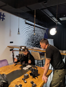 - В офисе компании. Мы организовали полноценную смену для съемок рабочих процессов, интервью сотрудников и показательных кадров с современным оборудованием.