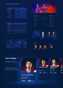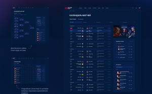 В календаре предусмотрен фильтр с возможностью выбора даты, турнира, команды с переключением между сыгранными и будущими матчами. Лидеры среди игроков и команд отображаются в превью турнирной таблицы.