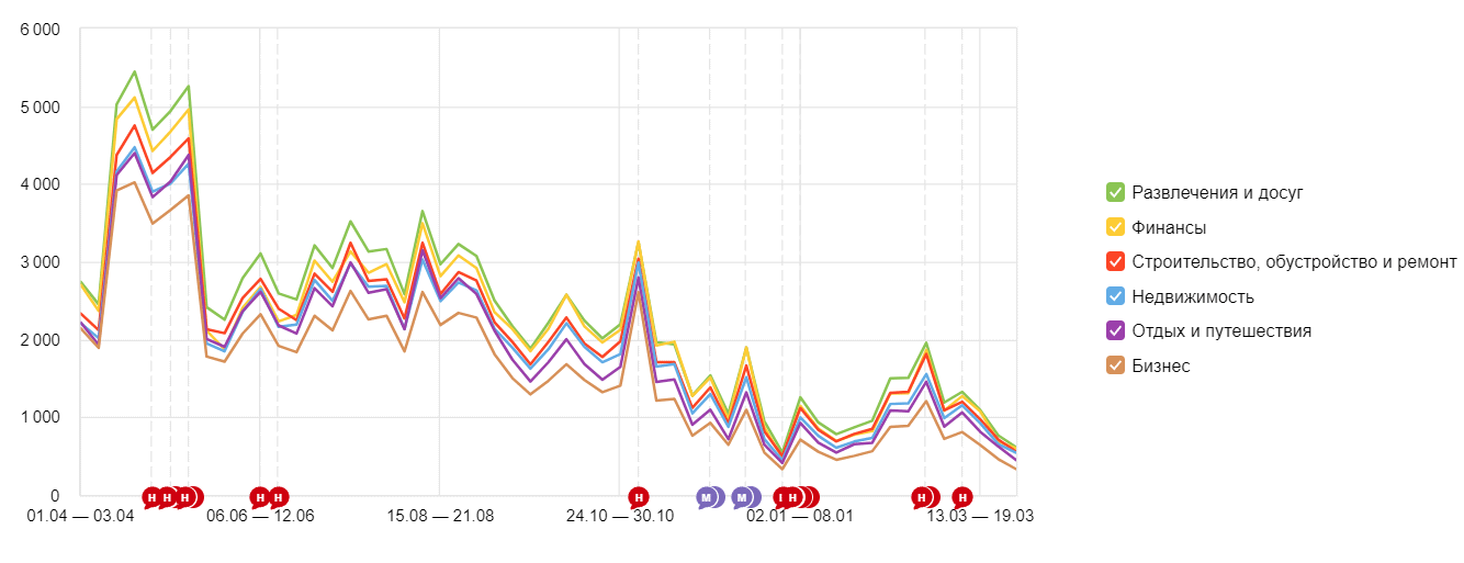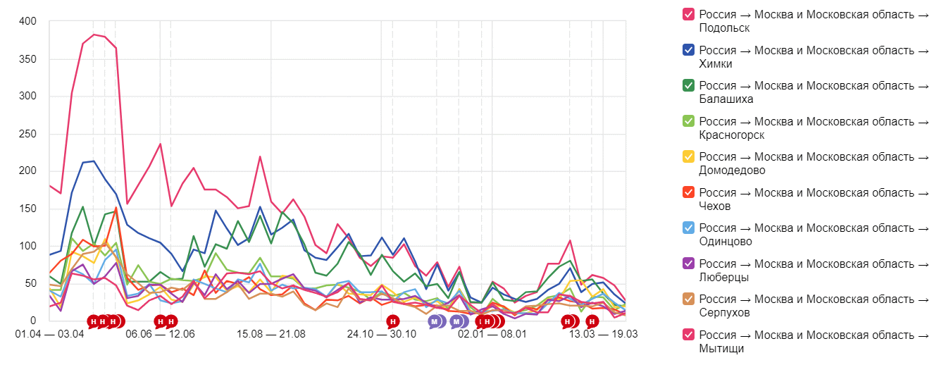 Изначально клиент видел свою аудиторию как людей 35-45 лет из городов-спутников (Клин, Химки, Тверь и др.). Однако анализ целевой аудитории по данным с сайта (годовой трафик) позволил скорректировать портрет.