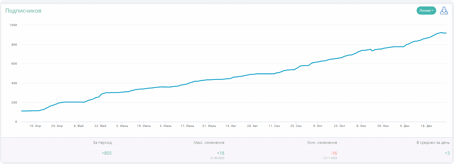 Рост сообщества: Увеличение числа целевых подписчиков на 800% (со 110 до 916 человек).