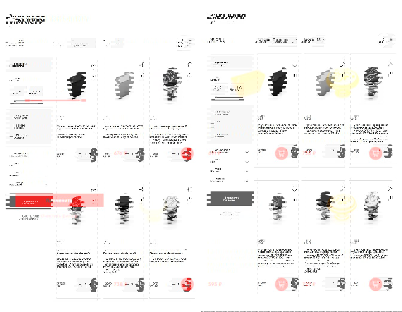 - Функциональность: Доступны функции сравнения товаров по характеристикам и добавления в закладки.
