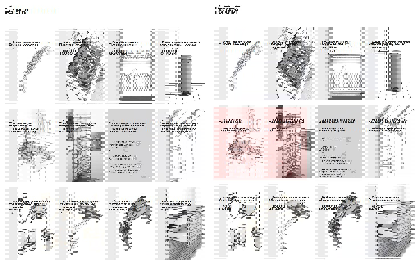 Чтобы сделать навигацию по каталогу более наглядной и привлекательной, для каждой категории товаров были разработаны уникальные иллюстрации. При наведении на категорию отображаются ее подразделы, что позволяет пользователям легко и быстро выбрать нужную товарную группу.