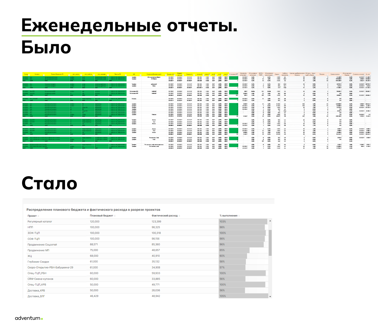 3. Коммуникации. Данные о кампании выгружаются «в один клик»: запланированный и реальный расход бюджета доступен оперативно всем внутренним заказчикам, включая топ-менеджмент.