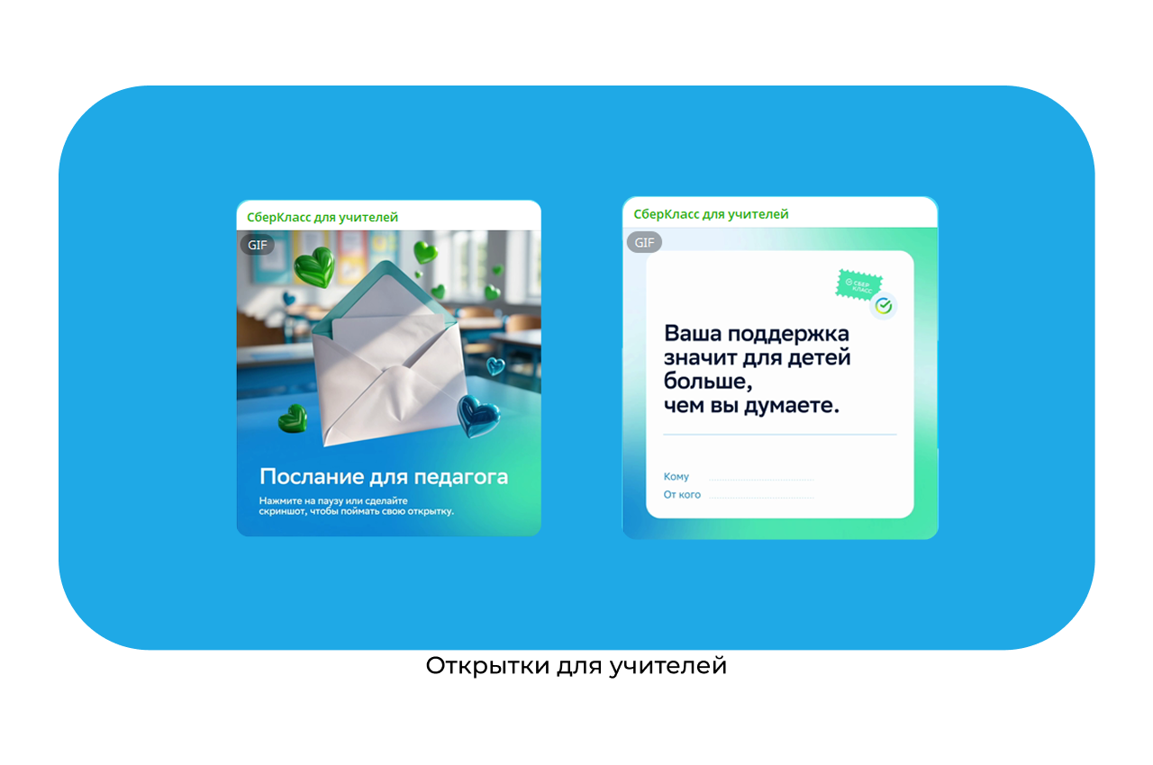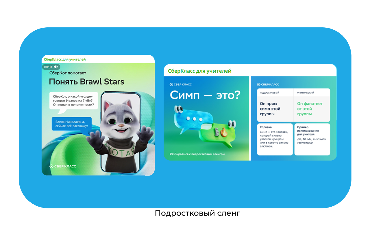 Ещё один важный акцент в позиционировании — учитель как личность. СберКласс должен стать открытой и понимающей платформой. Никаких канцеляризмов и заезженности: говорит просто, профессионально и с заботой о главном — педагоге.