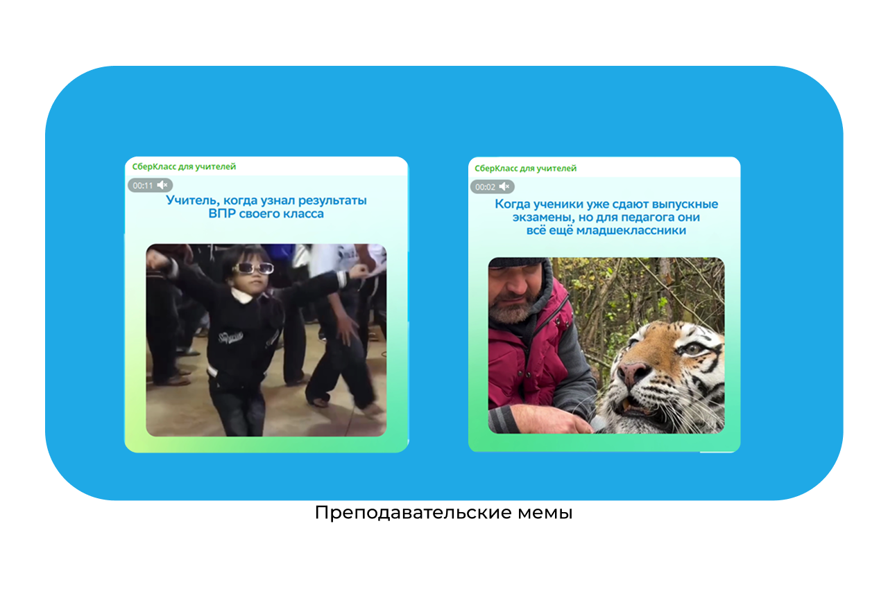 Достигли цели: сделали для СберКласса уникальный дизайн в стиле Сбера и полезный для учителей контент. Теперь подписаться на канал — это узнать мнение эксперта, забрать полезные хаки и посмеяться с жизненных мемов.