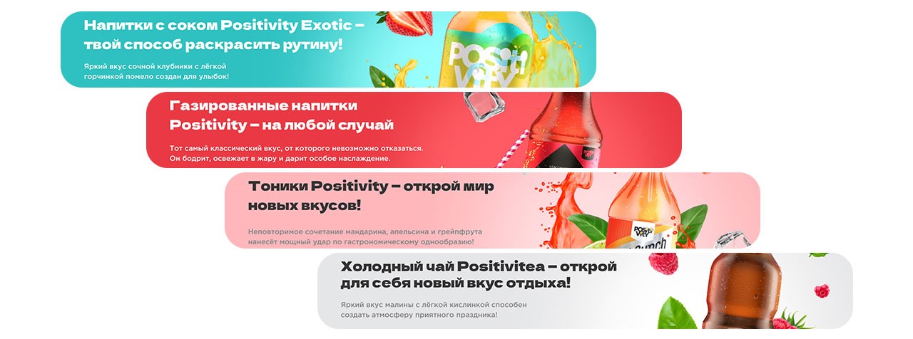 Заказчик проекта: Positivity – производитель сокосодержащих напитков, холодного чая, тоников, газированных напитков.