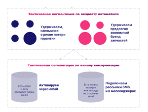 -Генеральная сегментация является основой стратегии и остается неизменной. Если стратегия построена вокруг жизненного цикла клиента, все кампании и задачи должны соответствовать этому подходу. Тактическая сегментация, напротив, может изменяться в зависимости от текущих задач и гипотез.