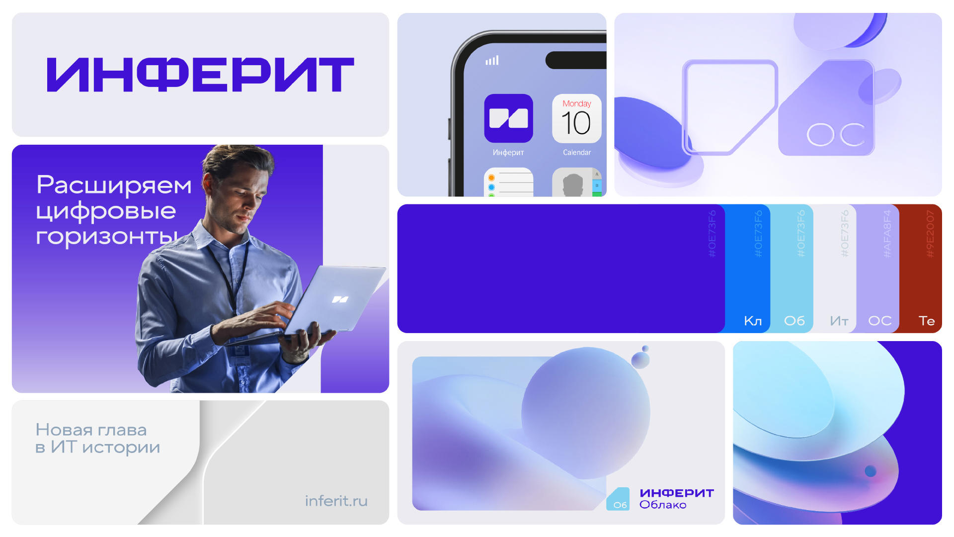 В ходе проекта агентство разработало фирменный знак и комплексную систему логотипов для всех саббрендов компании, включая «Инферит Техника», «Инферит Клаудмастер», «Инферит Операционная система», «Инферит Облако» и «Инферит ИТМен».