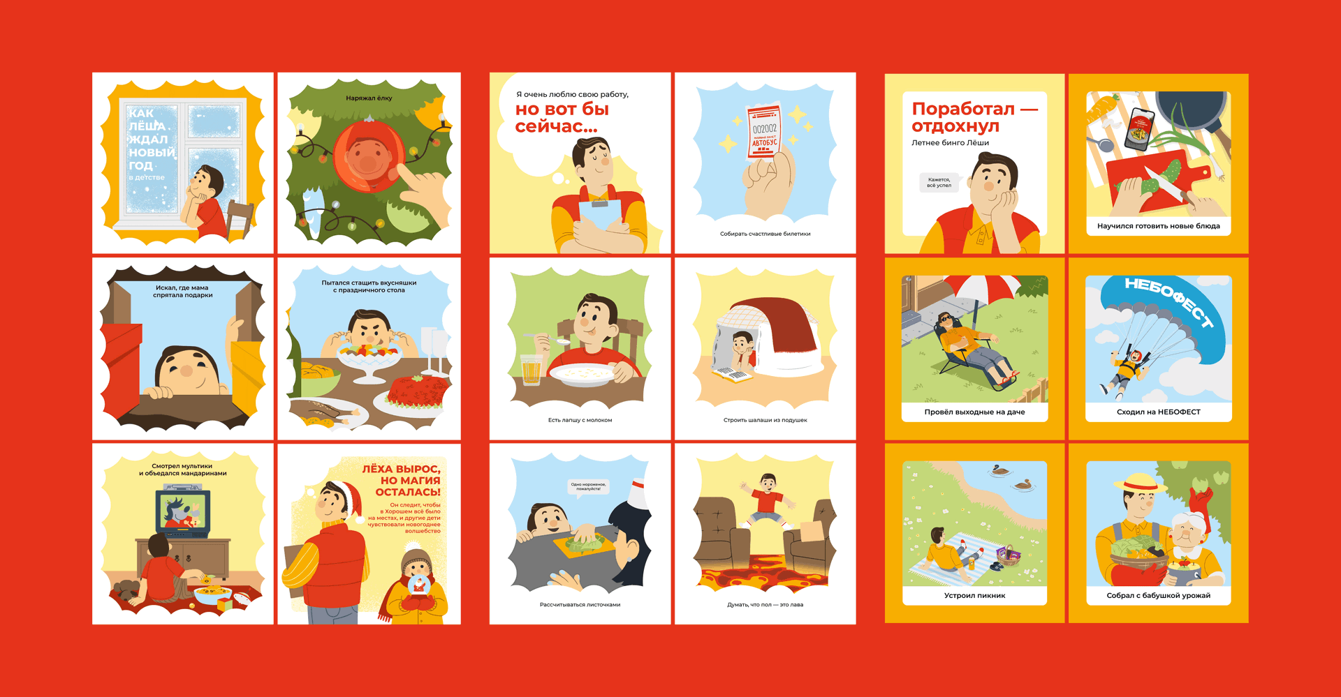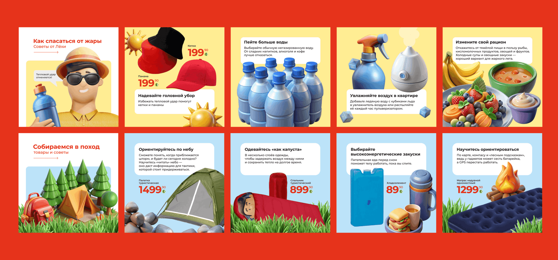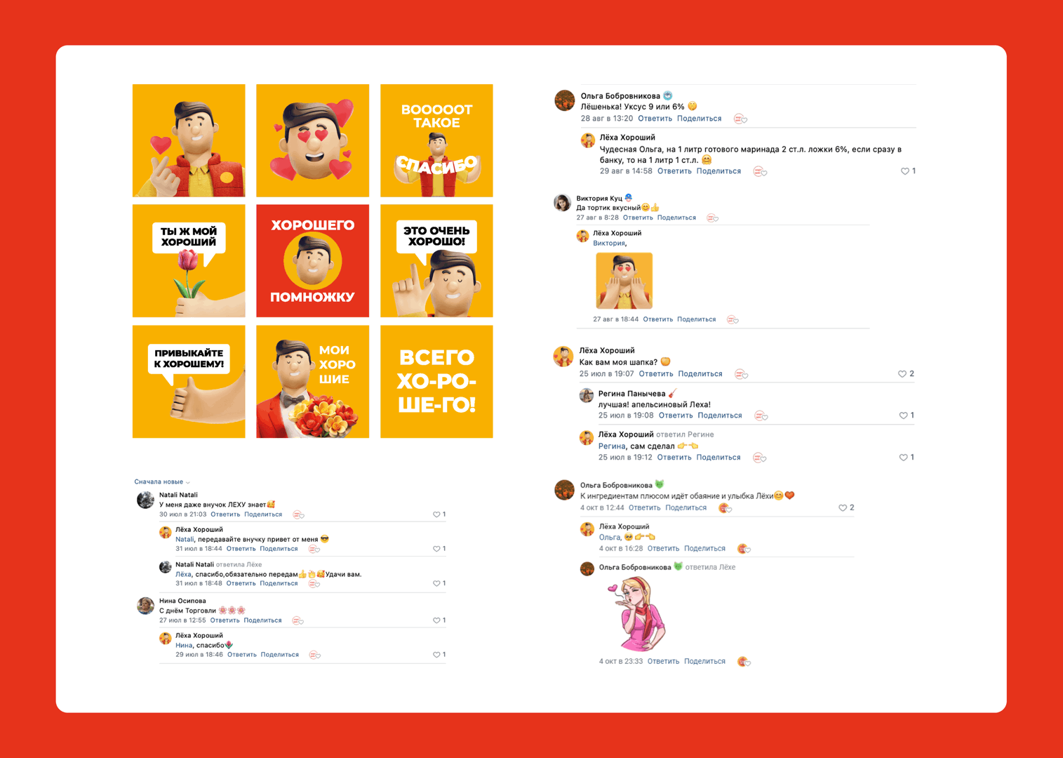 Герой гибко адаптируется под контекст: праздники, советы, акции, бытовые сцены. Лёша стал живым участником коммуникации и частью продающего контента.