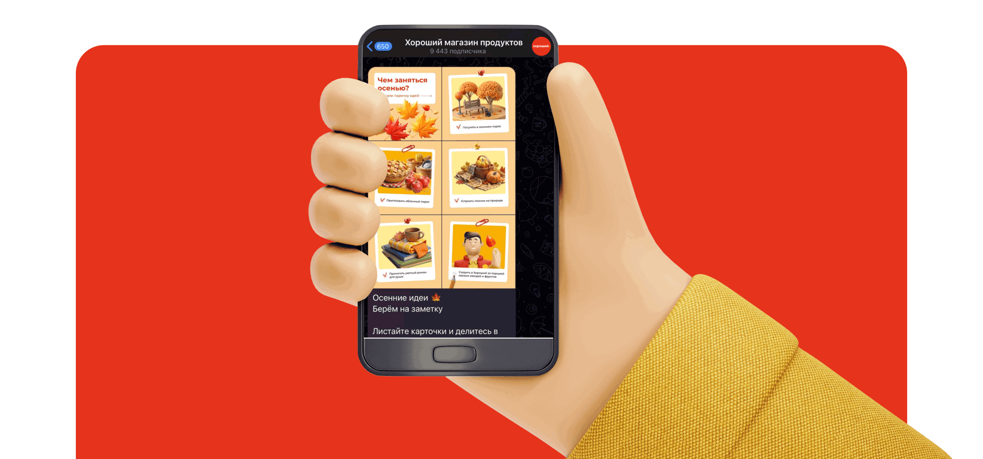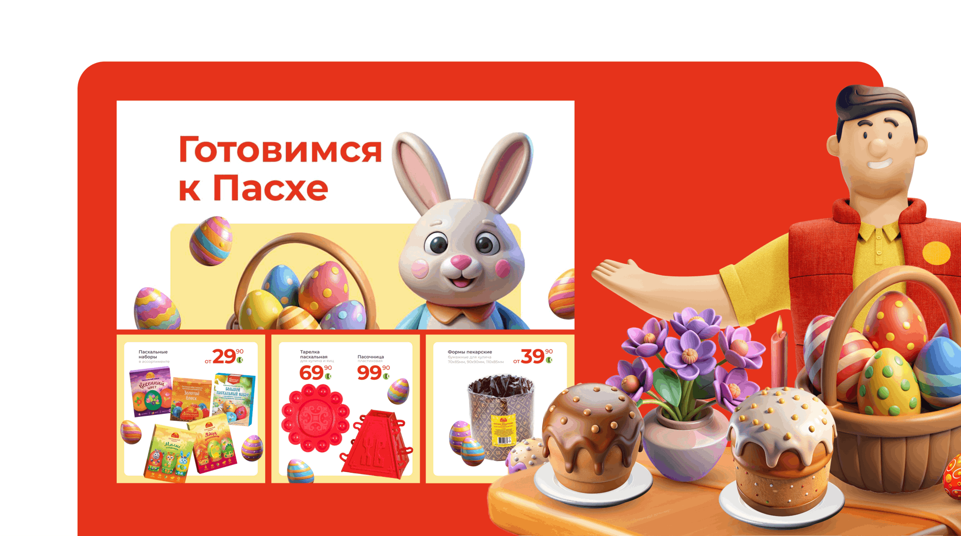 Добавили сюжетность и лёгкую анимацию: Лёша взаимодействует с товаром, визуал становится динамичным и запоминающимся.