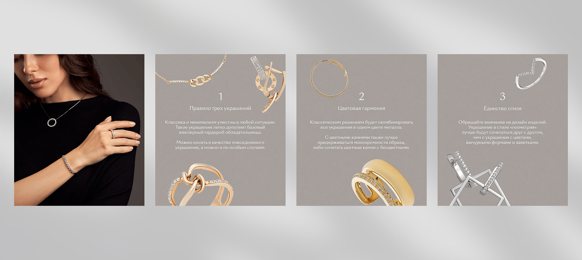 Чтобы демонстрировать ассортимент максимально полно, в контенте появились регулярные подборки украшений. Такой формат давал возможность аудитории не только вдохновляться эстетикой бренда, но и сразу переходить к ознакомлению с конкретными моделями.