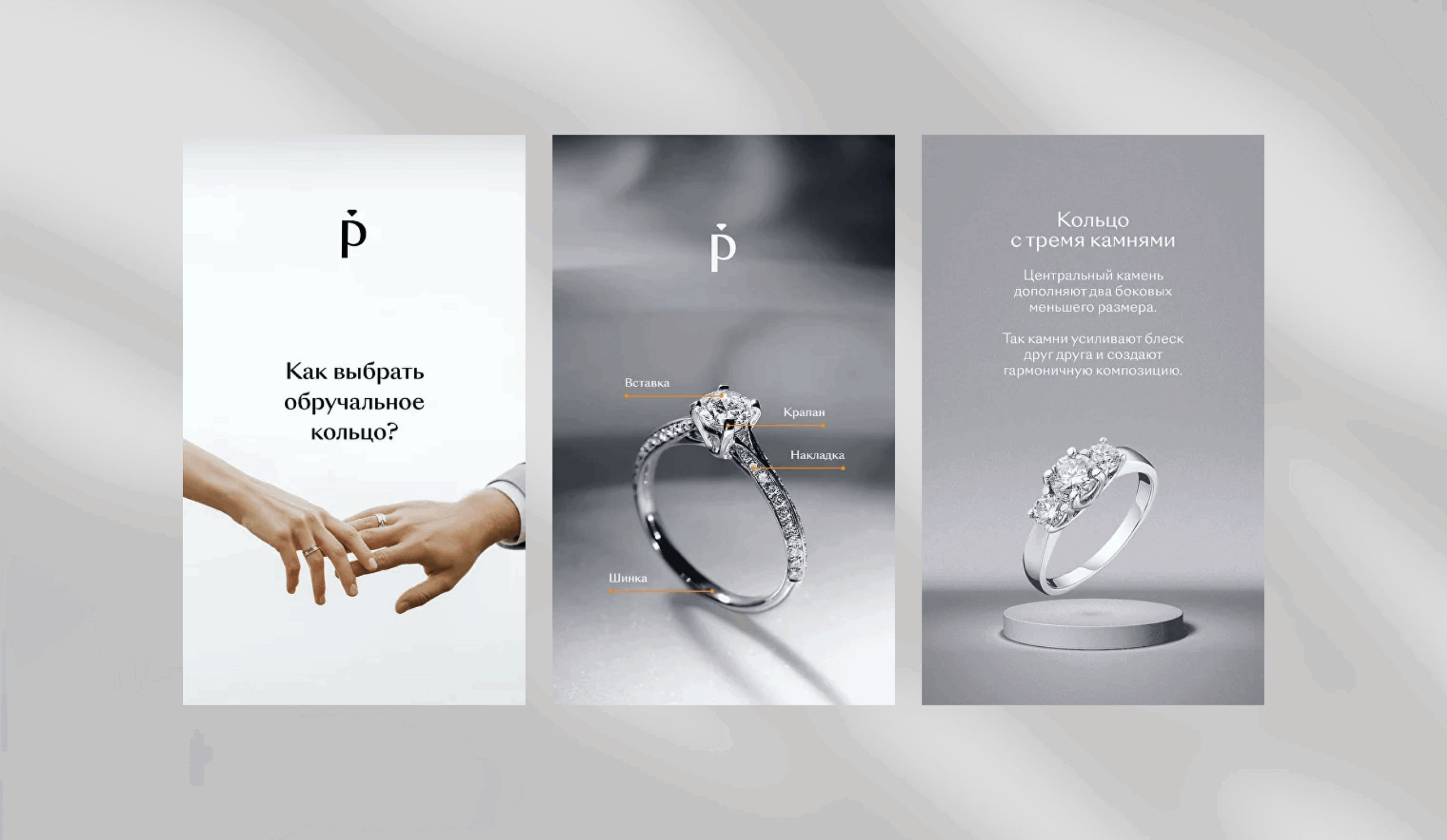 Одной из первых задач стало формирование тематических рубрик и продуманного контент-плана. FABRIKA agency сделали акцент не только на демонстрации ювелирных изделий, но и на расширении контента за счет полезных и развлекательных форматов. Такой баланс позволил повысить вовлеченность и удержание аудитории.