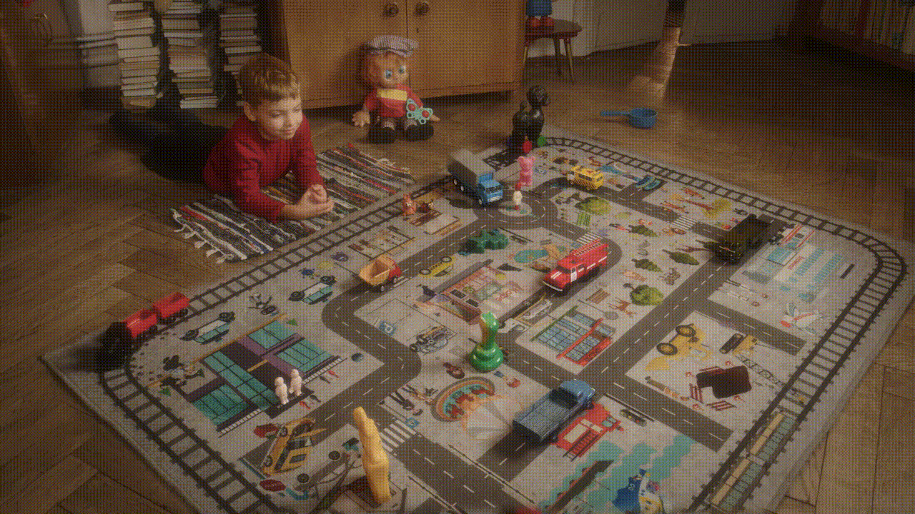 Чтобы передать атмосферу детства и волшебство игр, специалиста студии использовали стоп-моушн анимацию — движущиеся игрушки, которые “путешествуют” по ковру. Для этого было сделано более 100 кадров, создающих эффект живого движения и вызывающих ностальгию. Такой подход добавил видео особой теплоты и оригинальности.