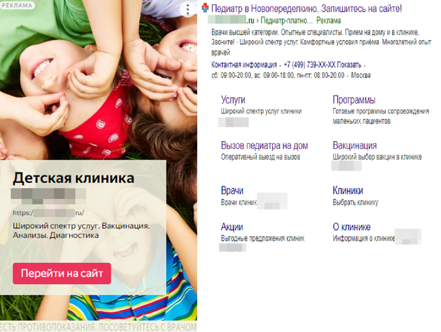 - РСЯ (Рекламная сеть Яндекса): реклама в виде баннеров и текстово-графических блоков на сайтах-партнерах Яндекса, увеличивающая узнаваемость клиники и привлекательность её услуг.