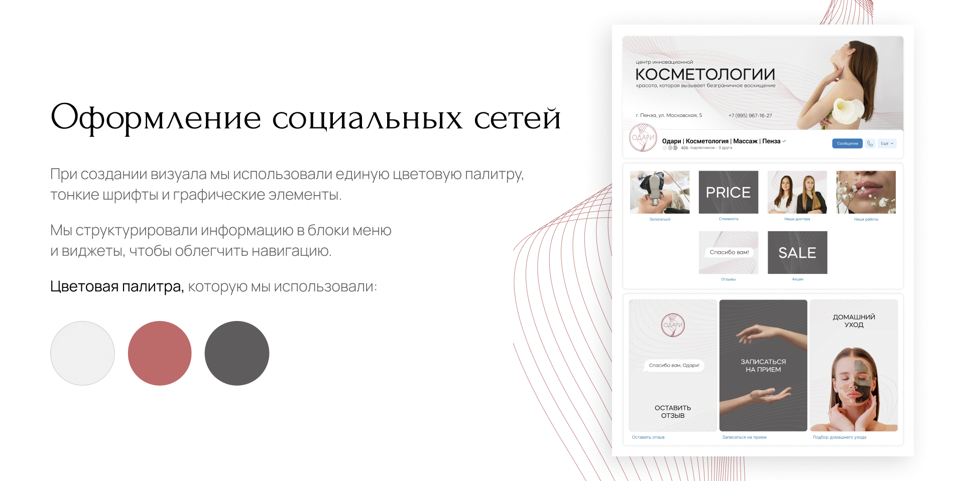 Соцсети были оформлены в едином стиле, выбрана подходящая цветовая палитра, визуал и структурирована информация.