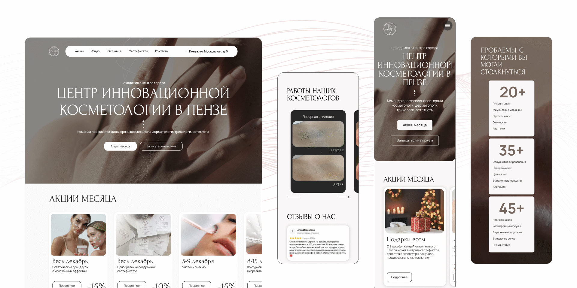 Разработали удобный лендинг с услугами, акциями, портфолио специалистов и записью на прием, который четко позиционирует компанию и ее услуги.