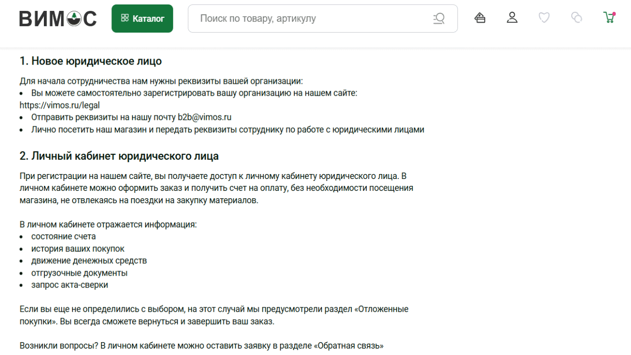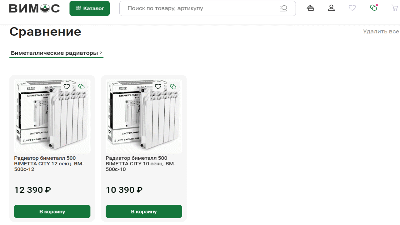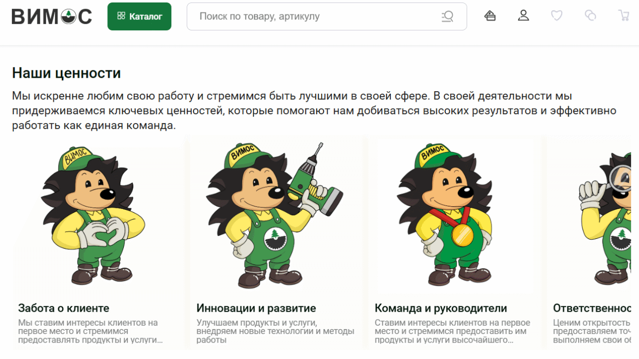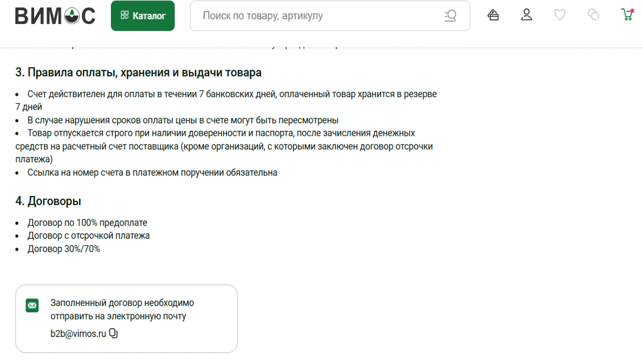 Это крайне практичная фишка для сайта строительно-отделочных материалов и хозяйственных товаров. Покупателю часто сложно подобрать количество и объем товаров «на глаз», а подобный калькулятор в «Вимосе» помогает избежать ошибок и привлекает новых клиентов своим удобным применением.