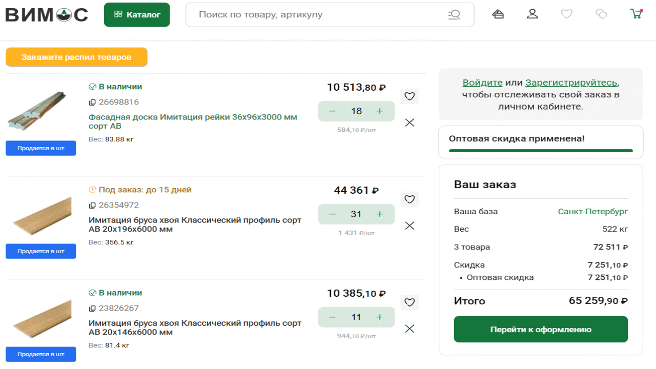 4. «Оптовая» механика в корзине.