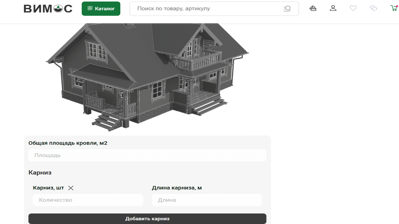 Команда переработала локальные калькуляторы — один для сайдинга, второй для водостоков. Пользователь вводит параметры дома, выбирает тип, цвет, и система рассчитывает: