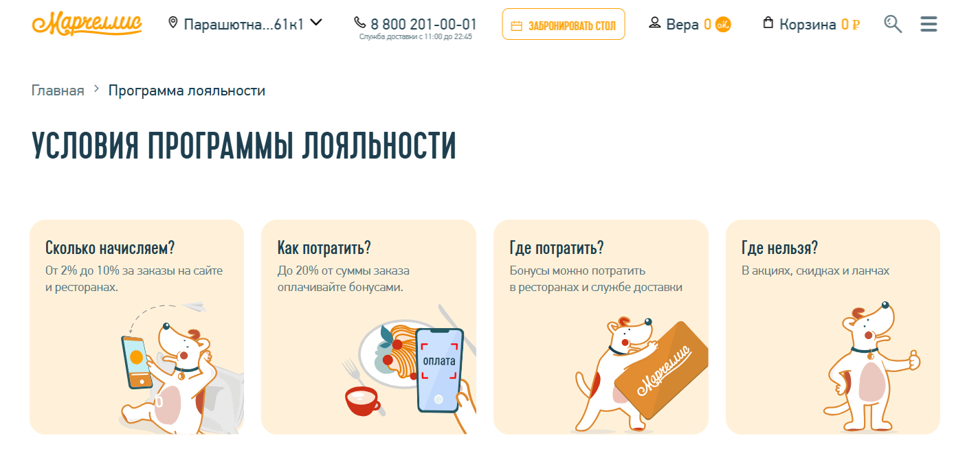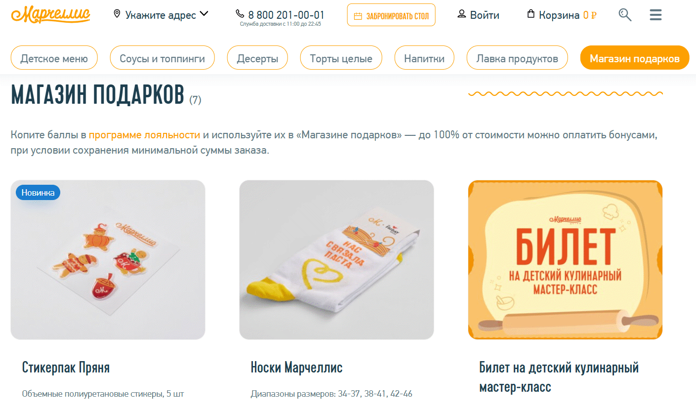 На сайте появился отдельный раздел — магазин подарков. Здесь пользователь может потратить бонусы не только на еду, но и на фирменный мерч; билеты на мастер-классы; специальные товары и предложения.