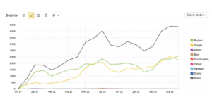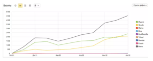 Пик посещаемости был достигнут в августе 2022 года – 4500 посетителей в месяц. Была решена вторая задача проекта.
