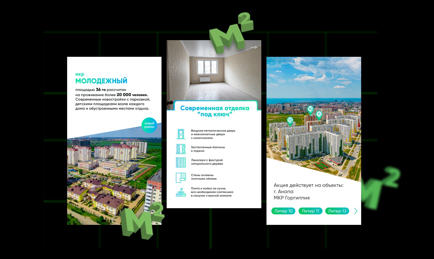 В сторис созданы отдельные разделы с презентациями ЖК на побережье, в Краснодаре и Ростове-на-Дону.