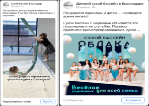 - Прямое предложение: акцент на компании мам и детей в бассейнах с воздушными шариками — точно в целевую аудиторию.