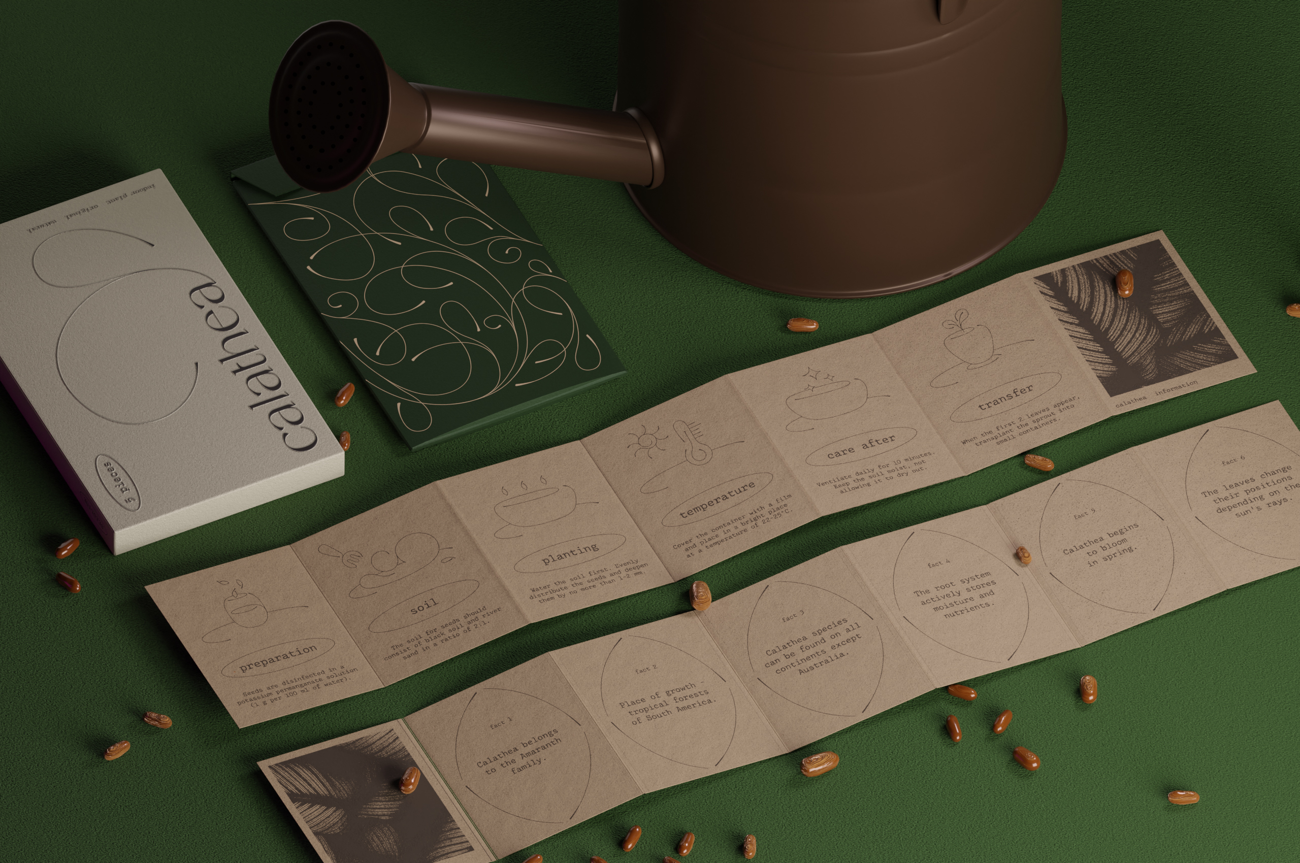 Внутри располагается упаковка семян и вкладыш с инструкцией. В продолжении фирменного элемента на лицевой стороне упаковки, на внутренних материалах также используются изогнутые линии, символизирующие ростки. А на вкладыше иллюстрации стилизованы под общую эстетику.