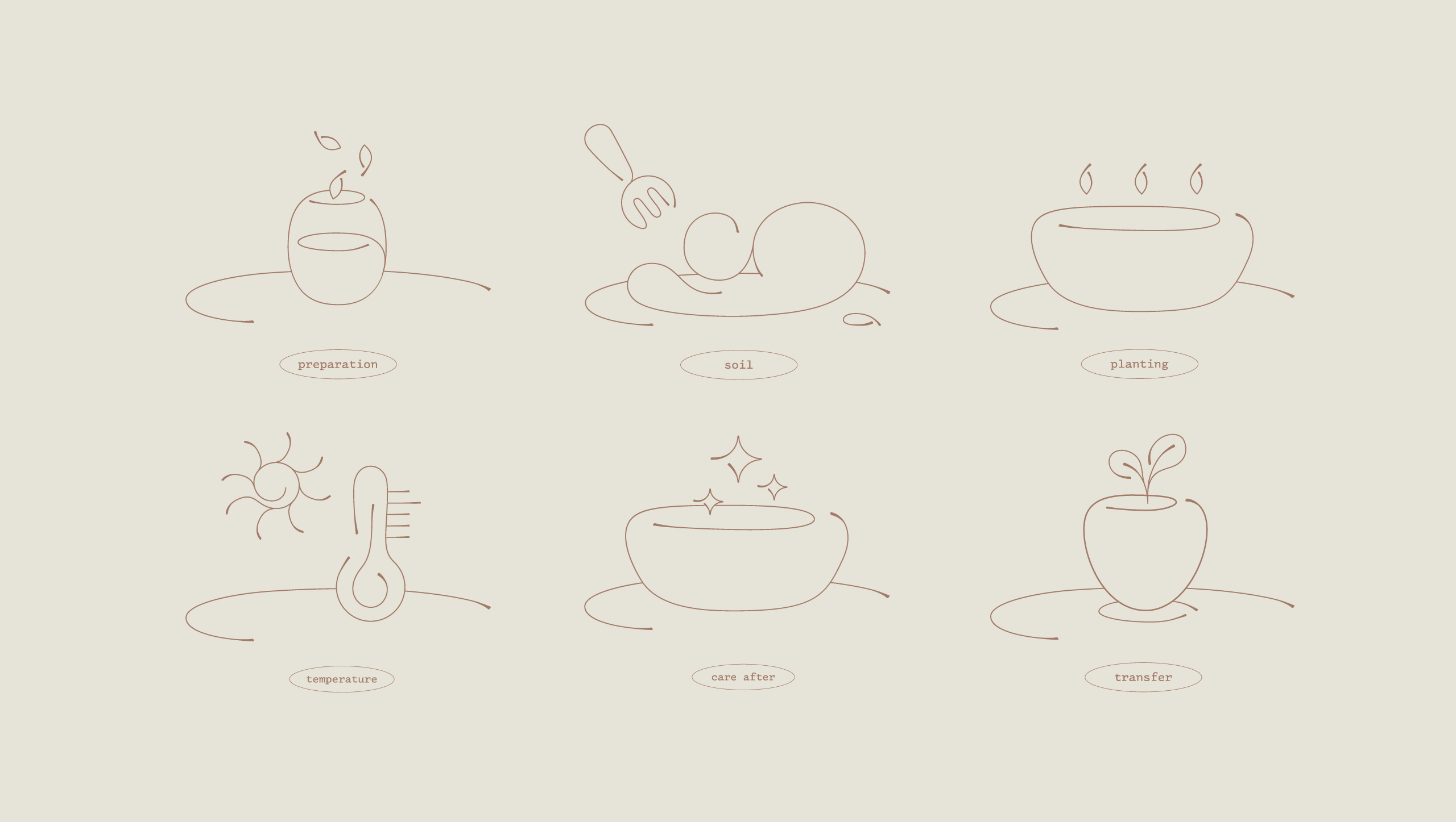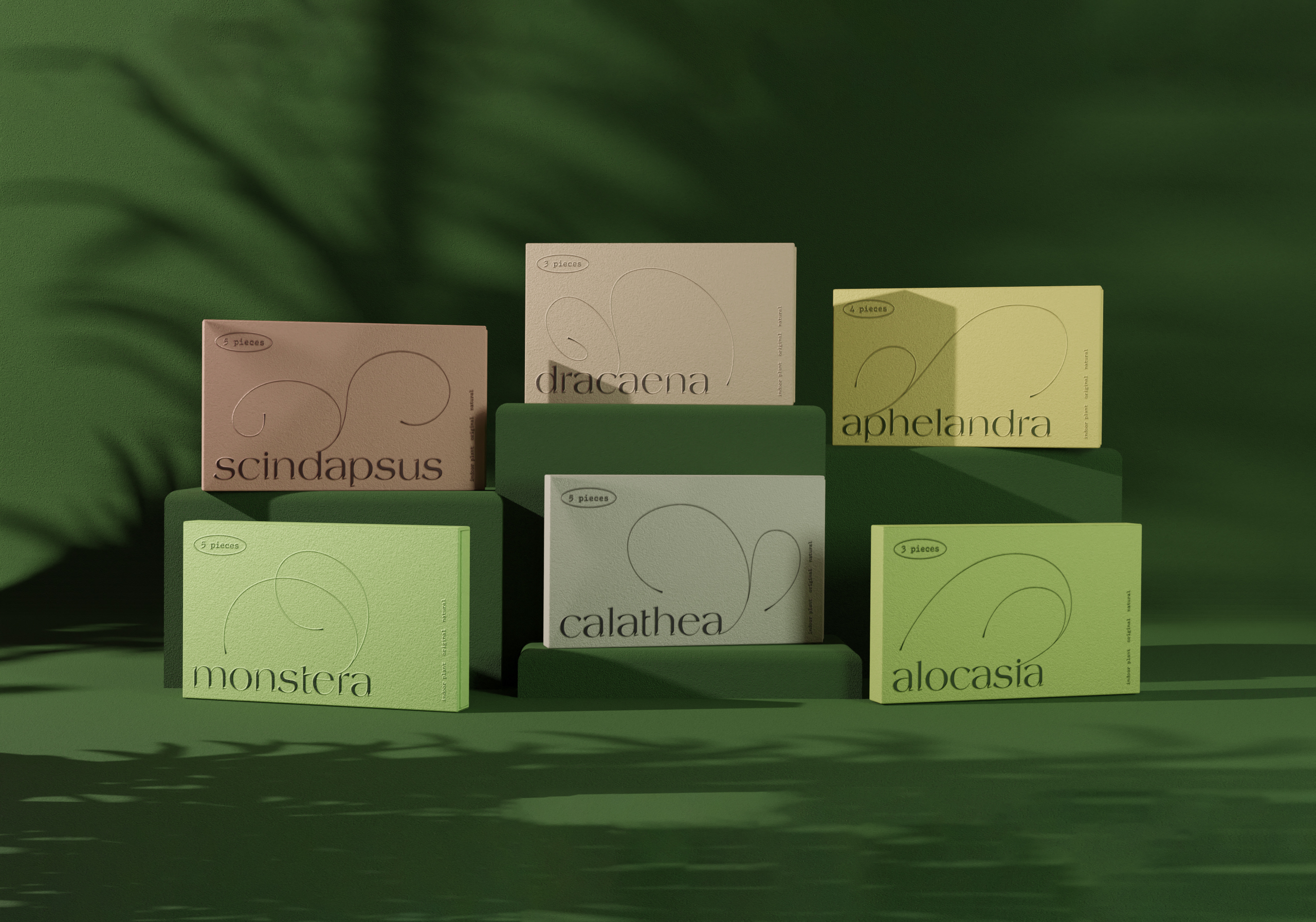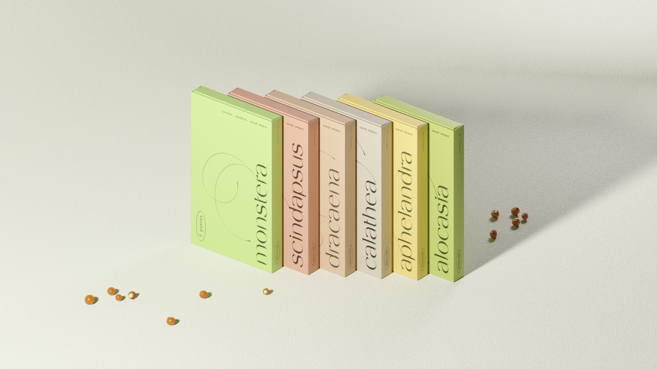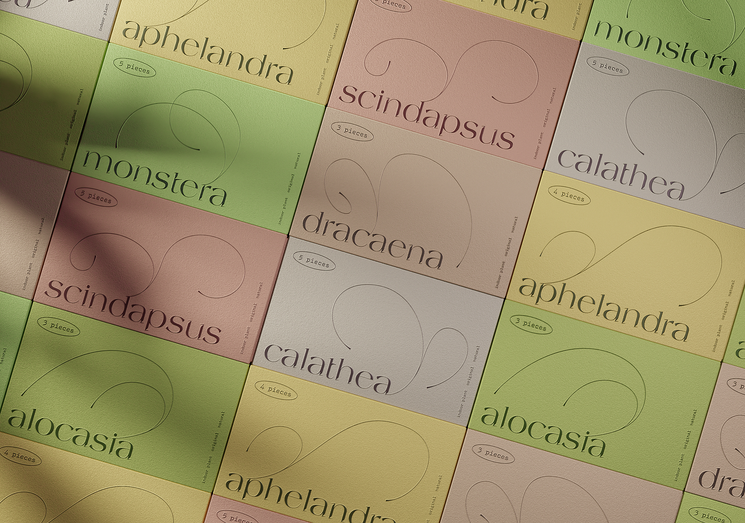 Чтобы передать акцент на деталях, было разработано фирменное начертание в стиле современной антиквы. Тонкие и контрастные элементы шрифта призваны подчеркнуть хрупкость ростков и необходимость проявлять максимальную заботу при выращивании данных декоративных растений.