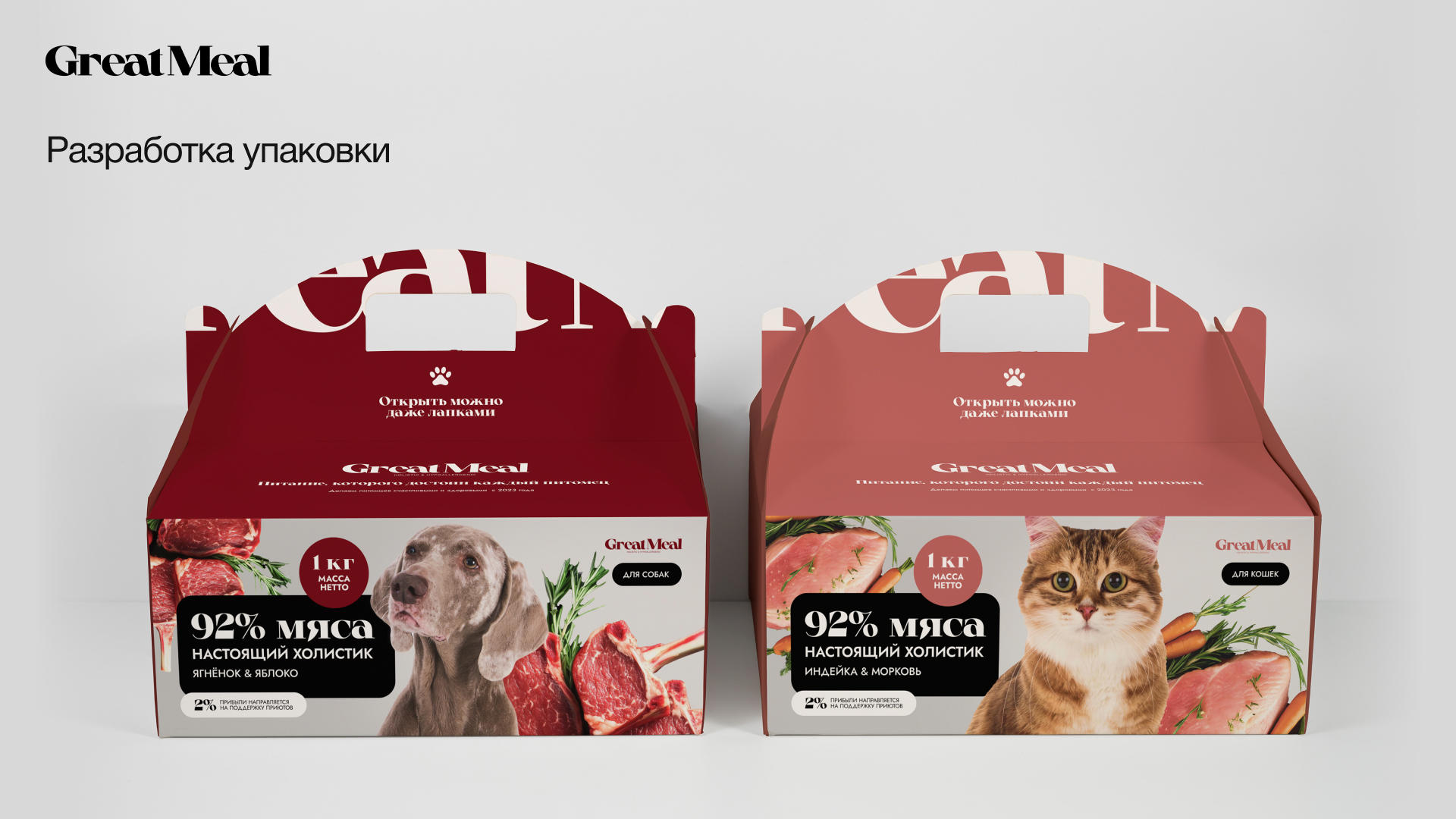 Заказчик проекта: Great Meal — бренд натуральных кормов для собак и кошек с высоким содержанием мяса. Продукция Great Meal создаётся в России по технологии мягкой воздушной сушки, без зерна, искусственных добавок и компромиссов по качеству.