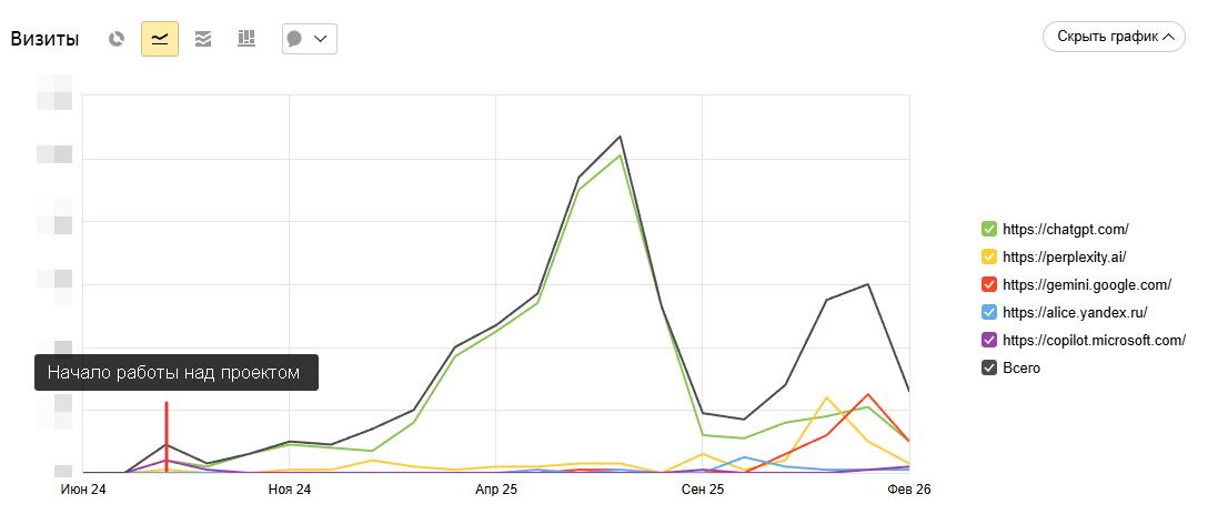 В результате ИИ-системы редко использовали материалы сайта при формировании ответов. Это снижало цитируемость и ограничивало охват аудитории, которая ищет информацию через нейро-выдачу.