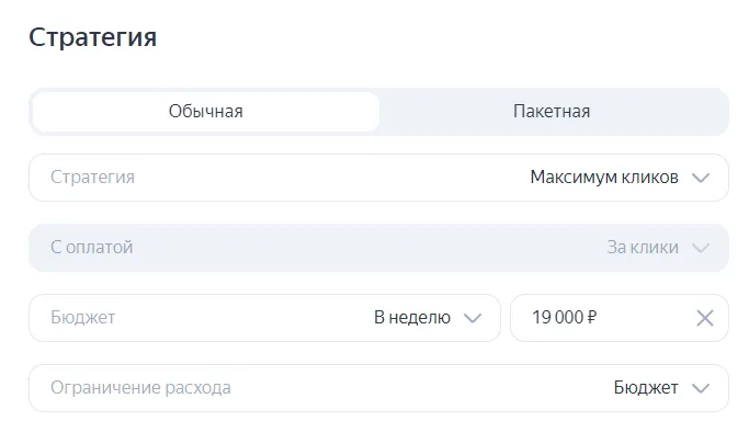 - Кампании перевели на стратегию «Максимум кликов с недельным бюджетом».