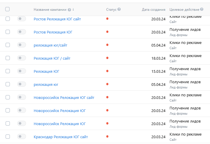 - Разработали структуру рекламных кампаний.