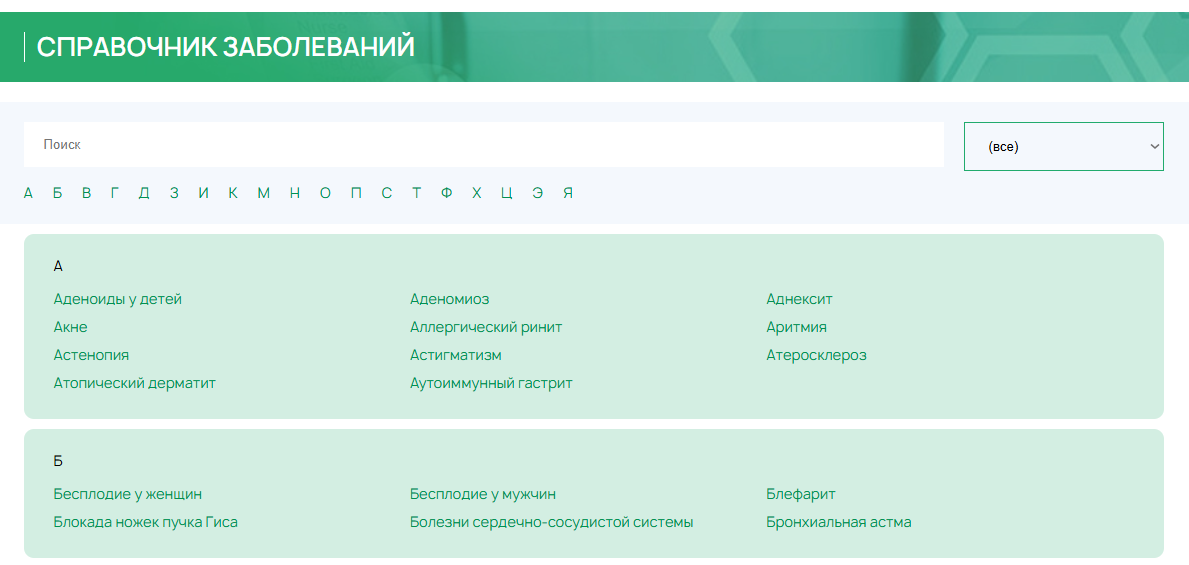 Дополнительно запущен и активно развивается раздел «Заболевания» – главный источник информационного трафика. В нем появляются статьи, подготовленные с учетом запросов пользователей и E-E-A-T-факторов.