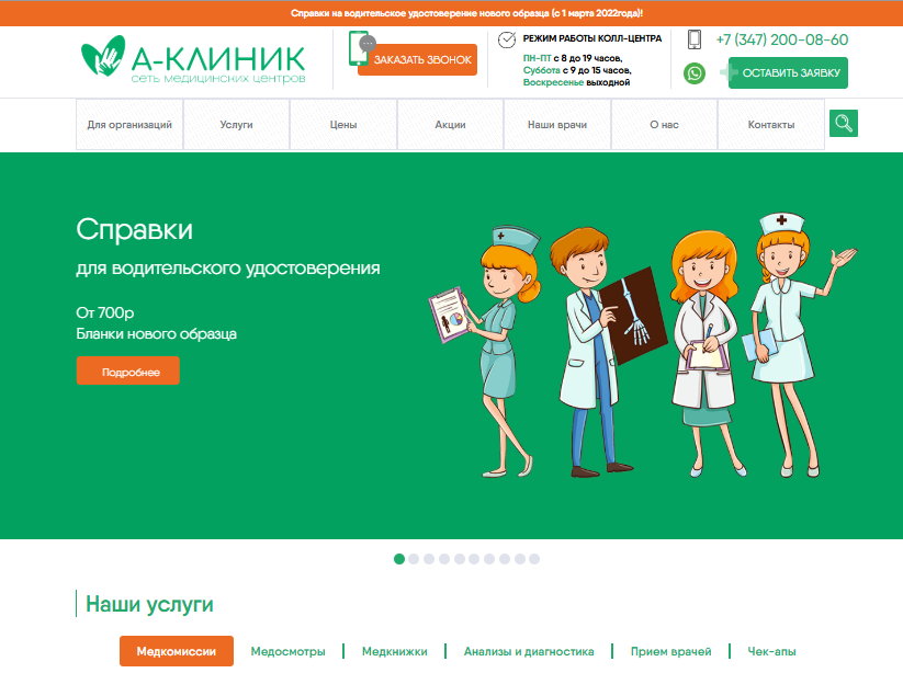- Продвижение справок и медосмотров вывело клинику на лидирующие позиции в регионе.