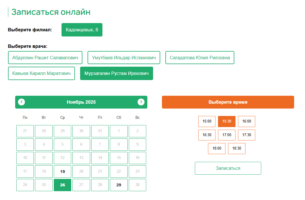 - Интеграция с системой «Медохват» значительно увеличила количество записей и упростила путь пользователя.