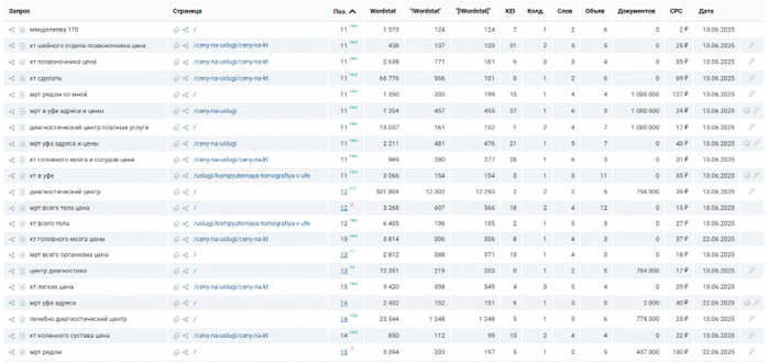 Затем было расширено семантическое ядро – SEO-специалисты превратили его в полноценную базу запросов по десяткам направлений диагностики.