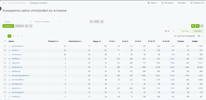 Специалисты начали с исследования конкурентов, семантики и поведения целевой аудитории. Для анализа использовали отчет «Конкуренты в поиске» в Keys.so, что позволило: