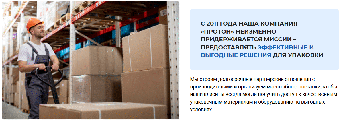 В каталоге — десятки товарных групп: упаковочные материалы, сопутствующие инструменты, расходники и спецодежда. Компания работает сразу в нескольких городах и осуществляет доставку, поэтому для бизнеса было критично получать целевые заказы не только из «домашнего» региона, но и из соседних крупных городов.