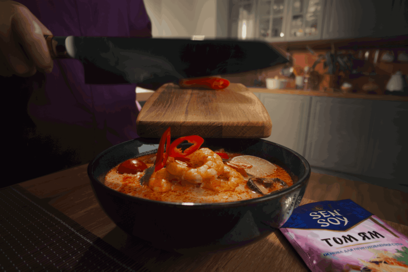 Перед креативным продакшном стояла задача усилить позиционирование Sen Soy как экспертного бренда в сегменте азиатских продуктов. Ключевая идея коммуникации – представить Sen Soy как must-have ингредиент для создания аутентичных азиатских блюд в домашних условиях.