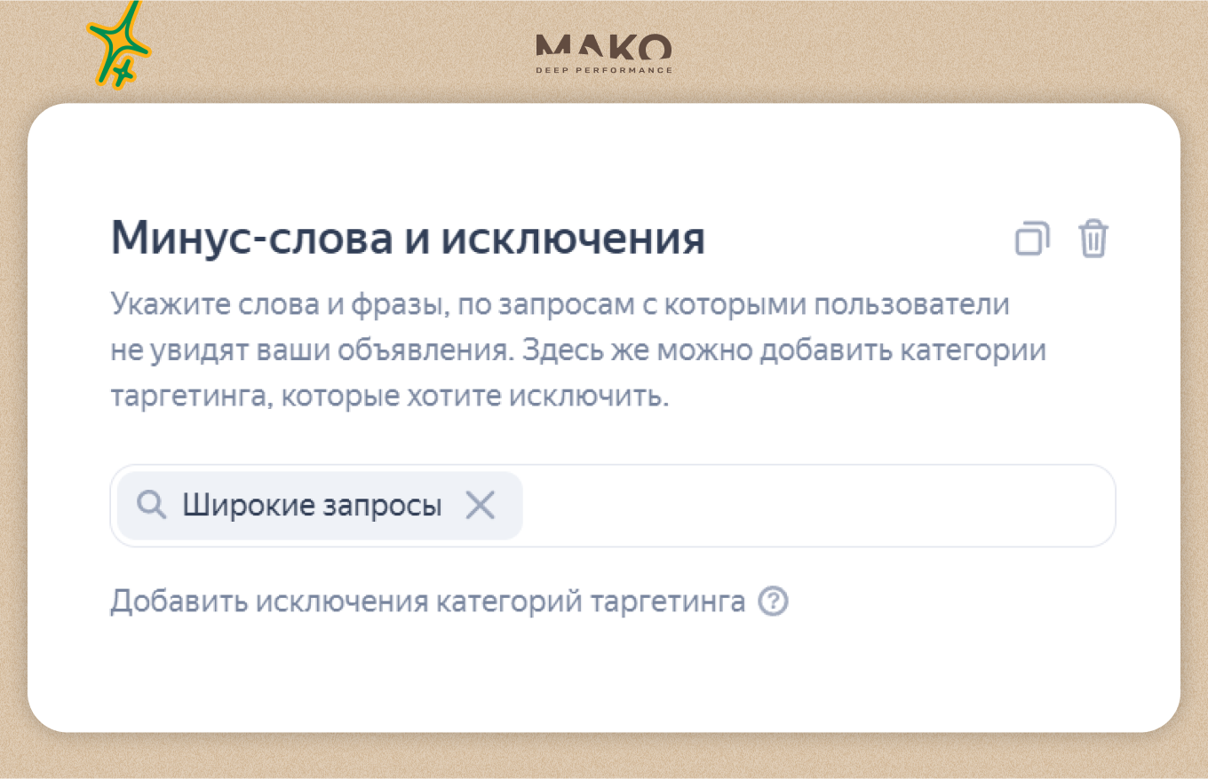 - Добавление минус-слов, чтобы исключить эти запросы и запретить алгоритмам показывать по ним рекламу: