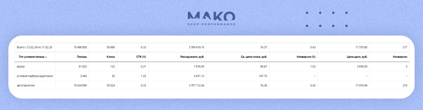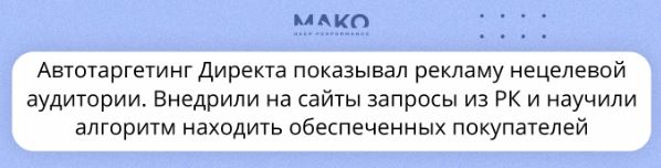 Вместо прямой конкуренции в дорогостоящем поисковом трафике, специалисты MAKO предложили стратегию привлечения аудитории через РСЯ.
