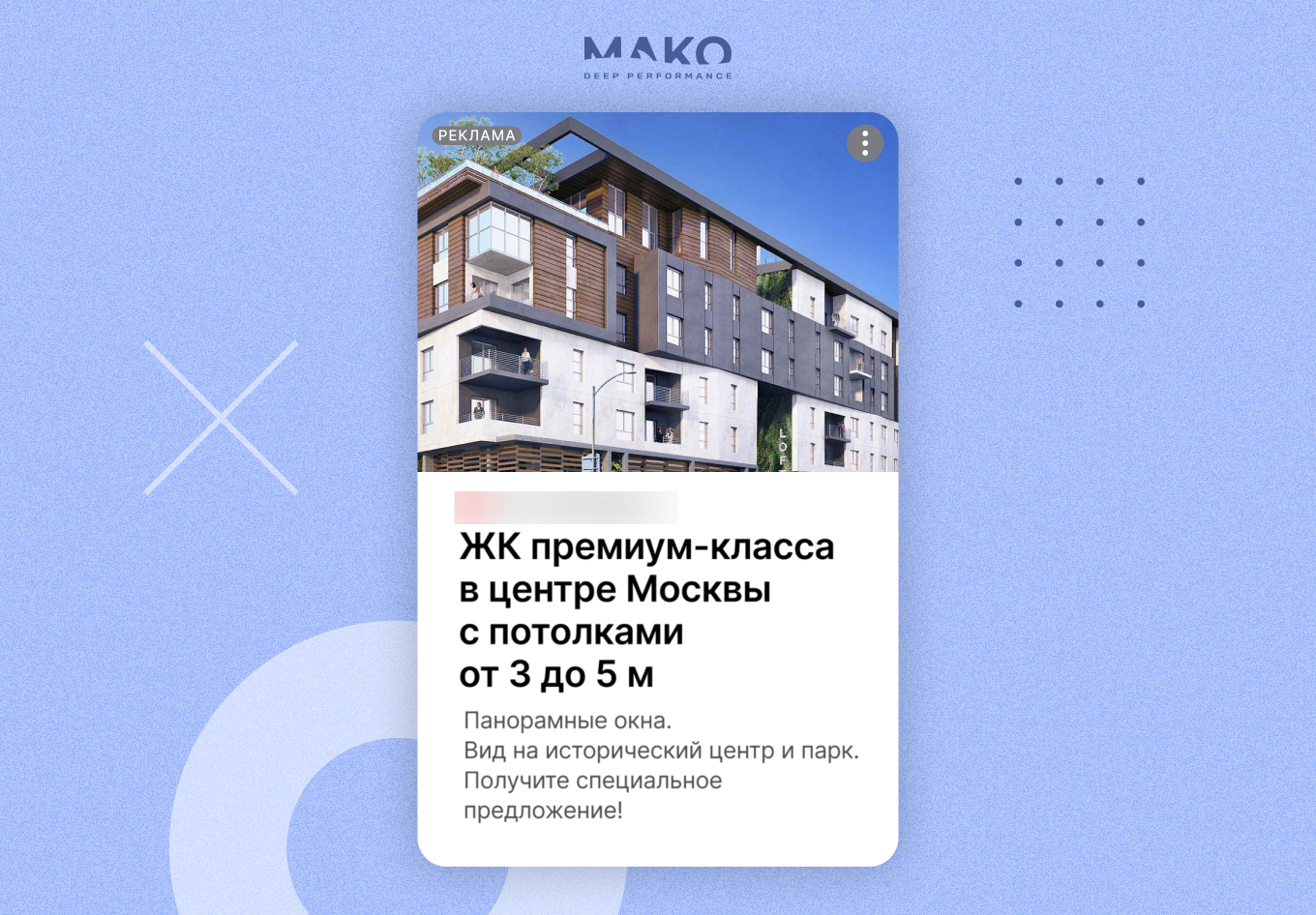 - Использование формулировок «Премиальная квартира в Москве + локация + ключевое преимущество».