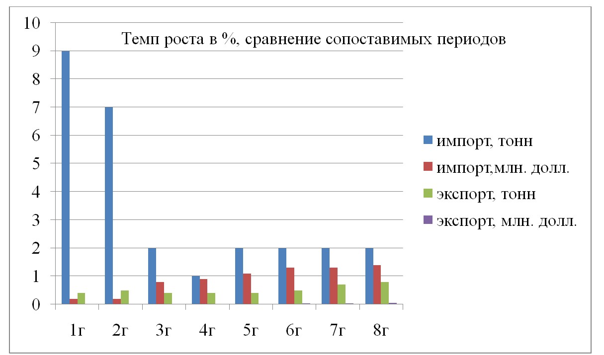 - Для решения второй задачи нами была изучена отечественная и иностранная таможенная и торговая статистика. Представлен объем импорта и экспорта в тоннах и млн. долларов за несколько лет. Информация отображена на условном графике.