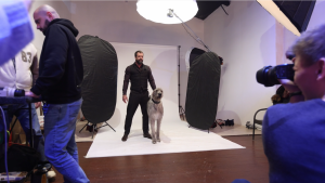 А нам нужен был именно павильон – ведь планировалась застройка семи масштабных декораций, одной из которых был елочный базар! И вишенка на торте – параллельно со съемкой проморолика необходимо было провести фотосессию с 12(!) собаками. В общем, предновогоднее комбо.