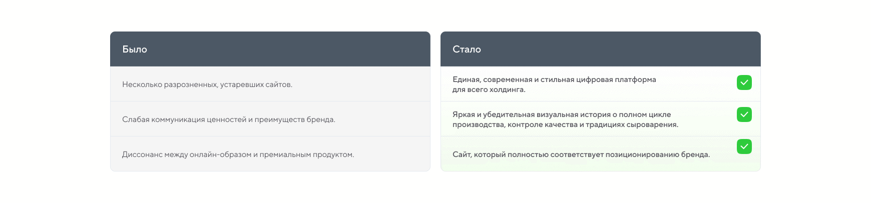 Однако цифровой актив компании застрял в прошлом десятилетии. Пока технологи в камерах созревания добивались идеального вкуса, сайт транслировал пользователю совсем другой месседж. Разрозненные посадочные страницы с устаревшим дизайном обесценивали продукт.